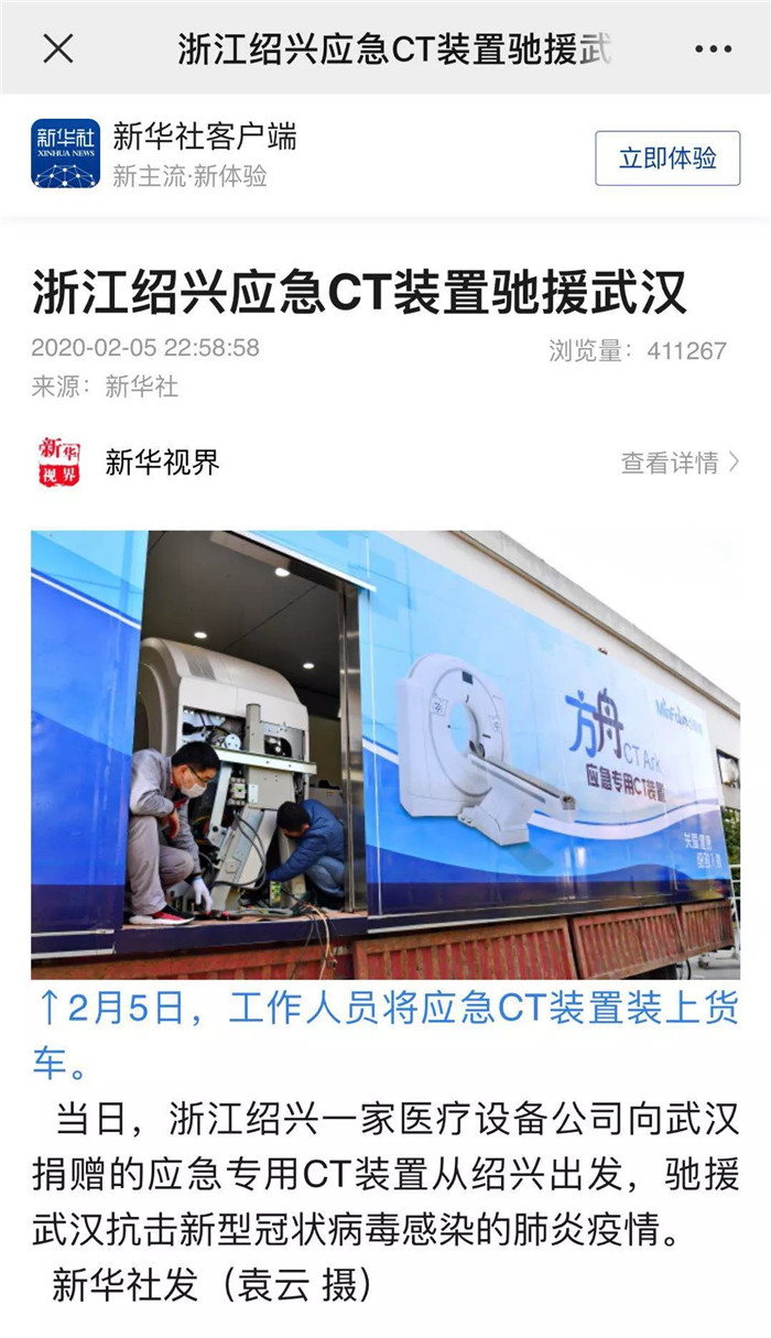 2月5日10時(shí),明峰醫(yī)療方艙式CT“方舟CT”已從浙江紹興正式發(fā)車(chē),前往武漢“方艙醫(yī)院”。(新華社報(bào)道)