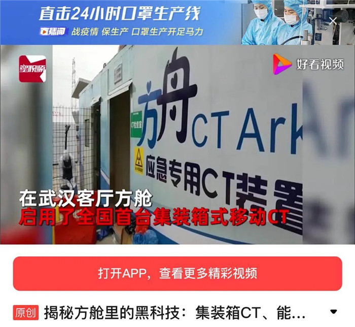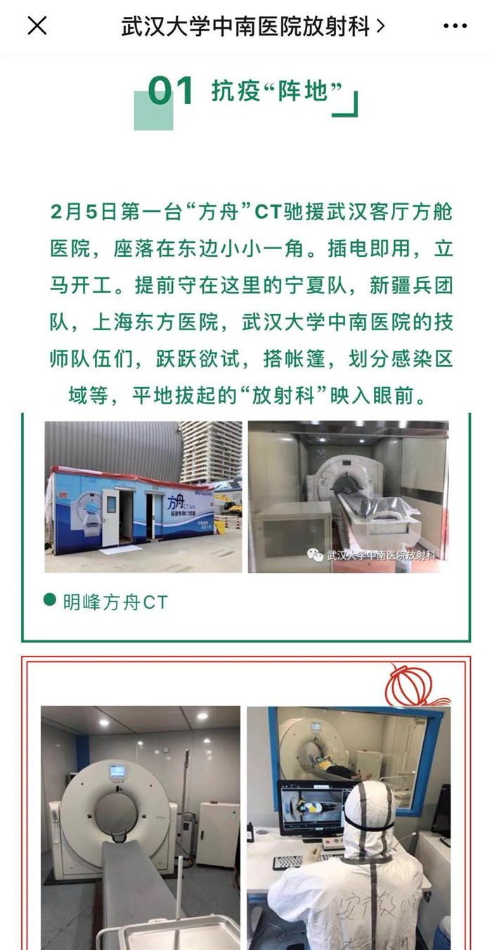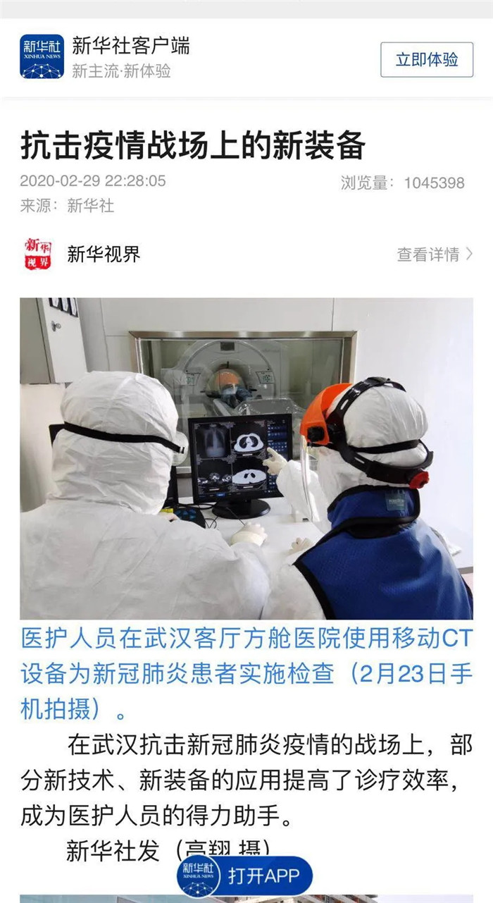 全球首臺方舟CT已于2020年2月8日在武漢客廳方艙醫(yī)院投入使用。