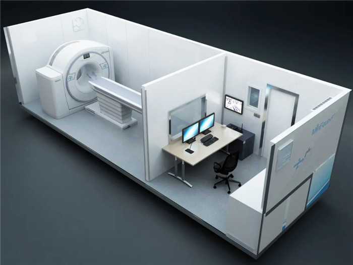 王瑤法博士親自坐鎮(zhèn)主持,大家都放棄了與家人團(tuán)聚的假期,日夜無(wú)眠,聚力創(chuàng)新,率先打造出方艙式移動(dòng)CT單元——方舟CT(Ark),可移動(dòng)、多功能和智能化,含明峰醫(yī)療CT、輻射防護(hù)(通過(guò)場(chǎng)所防護(hù)檢測(cè))、獨(dú)立操作間、獨(dú)立掃描間、強(qiáng)紫外線消毒裝置、電源分配系統(tǒng)、空調(diào)等,可獨(dú)立于醫(yī)院或放射科之外避免受檢者交叉感染,大大降低了防疫工作的風(fēng)險(xiǎn)和難度,并于2月8號(hào)率先應(yīng)用于武漢東西湖客廳方艙醫(yī)院,用實(shí)際行動(dòng)有力支援了全國(guó)人民和醫(yī)護(hù)工作者抗擊新冠疫情。