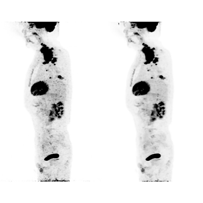 ▲左:50%低劑量圖像,右:新型AI重建圖像