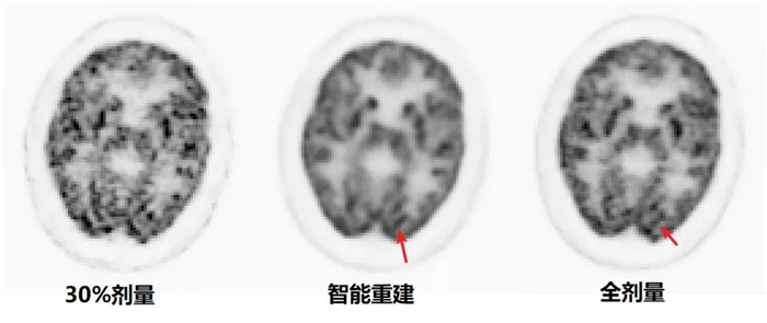 在明峰醫(yī)療和之江實驗室的共同努力下,這套自主研發(fā)的算法能夠直接賦能影像設(shè)備,形成軟硬件一體化系統(tǒng)。臨床評估顯示,明峰醫(yī)療研發(fā)的超低劑量PET重建技術(shù),能夠在減少身體掃描50%輻射劑量、頭部掃描70%輻射劑量的情況下,實現(xiàn)信噪比、分辨率、定量精度的多目標(biāo)優(yōu)化。