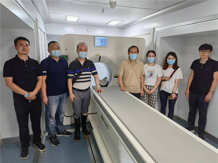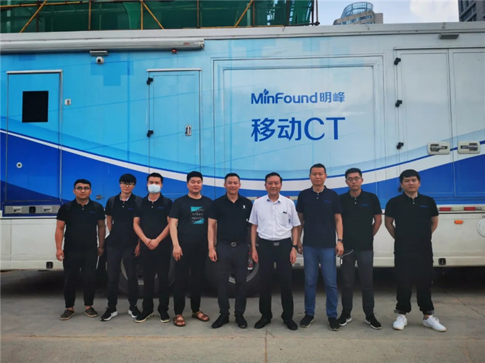 ▲鄭大一附院放射科主任張永高和劉杰技師長等人在明峰醫(yī)療移動CT內