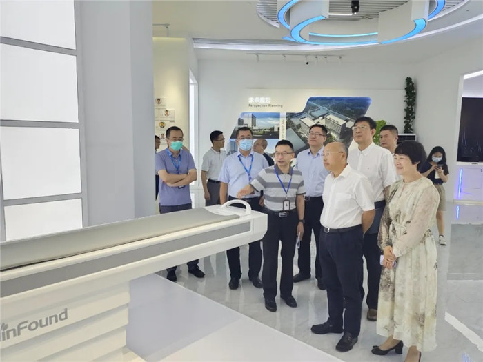 周國輝一行參觀了企業(yè)展廳和生產(chǎn)裝配調(diào)試車間,在明峰醫(yī)療聯(lián)合創(chuàng)始人潘華素、總經(jīng)理江浩川的陪同講解下詳細了解了目前的產(chǎn)品研發(fā)現(xiàn)狀、核心專利技術(shù)、全球布局及市場開發(fā)情況、抗疫期間所做的貢獻。隨后,周國輝與企業(yè)負責人座談,了解企業(yè)生產(chǎn)經(jīng)營情況和當前存在的困難問題。
